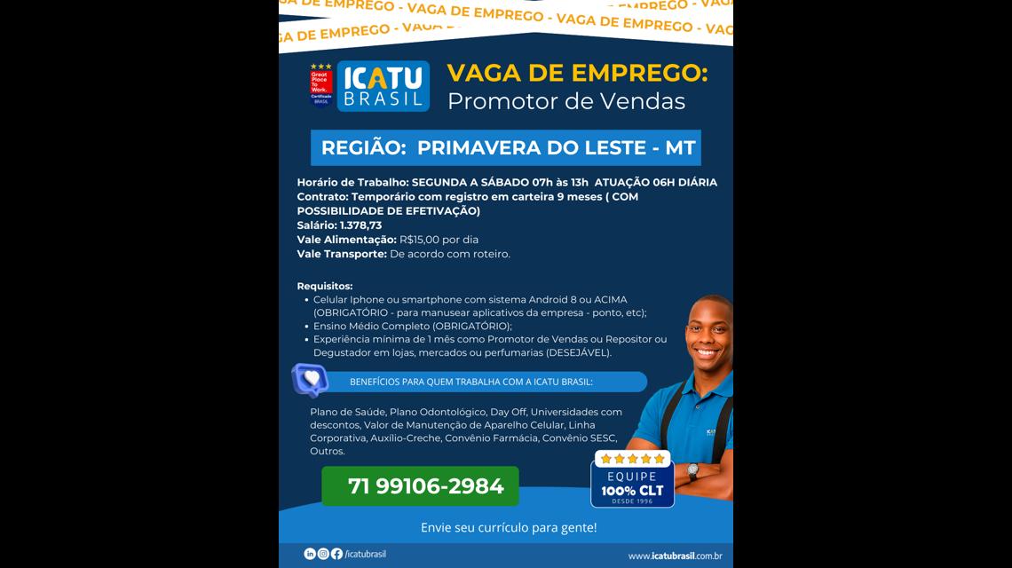 PROMOTOR DE ABASTECIMENTO - TRADE MARKETING - PRIMAVERA DO LESTE-MT